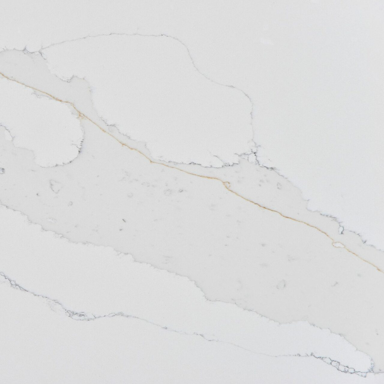 Calacatta Gold is an engineered quartz surface, typically composed of 90–94% crushed natural quartz crystal, bound with polymer resin and mineral pigments. With a Mohs hardness rating of 7, quartz is exceptionally hard and durable for kitchen use. The precise ratio of quartz aggregate, resin and pigment controls both the visual appearance and the surface performance. All engineered quartz slabs are manufactured to strict tolerances and tested for durability and finish quality.