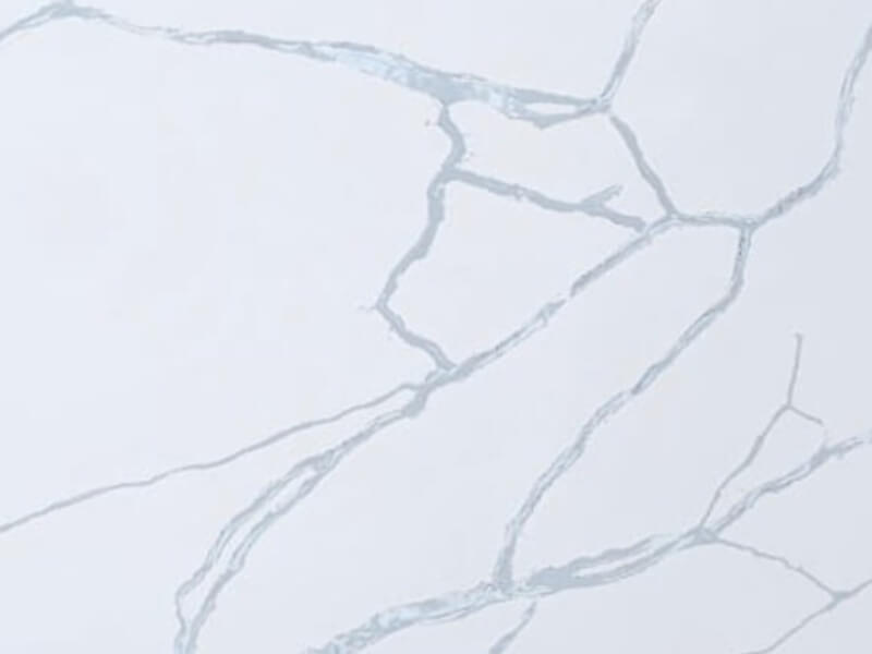 Calacatta Grey is an engineered quartz surface, typically composed of 90–94% crushed natural quartz crystal, bound with polymer resin and mineral pigments. With a Mohs hardness rating of 7, quartz is exceptionally hard and durable for kitchen use. The precise ratio of quartz aggregate, resin and pigment controls both the visual appearance and the surface performance. All engineered quartz slabs are manufactured to strict tolerances and tested for durability and finish quality.