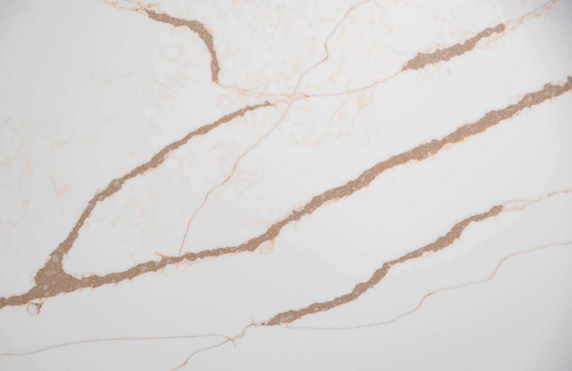 Calacatta Inferno HS is an engineered quartz surface, typically composed of 90–94% crushed natural quartz crystal, bound with polymer resin and mineral pigments. With a Mohs hardness rating of 7, quartz is exceptionally hard and durable for kitchen use. The precise ratio of quartz aggregate, resin and pigment controls both the visual appearance and the surface performance. All engineered quartz slabs are manufactured to strict tolerances and tested for durability and finish quality.
