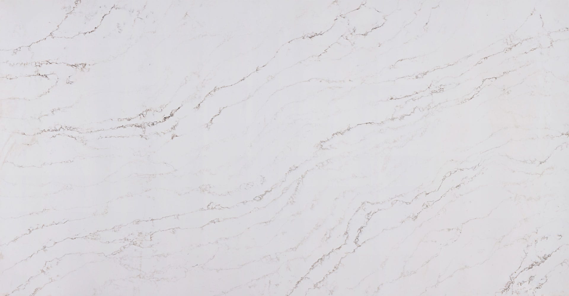 Calacatta Milan CQS is an engineered quartz surface, typically composed of 90–94% crushed natural quartz crystal, bound with polymer resin and mineral pigments. With a Mohs hardness rating of 7, quartz is exceptionally hard and durable for kitchen use. The precise ratio of quartz aggregate, resin and pigment controls both the visual appearance and the surface performance. All engineered quartz slabs are manufactured to strict tolerances and tested for durability and finish quality.