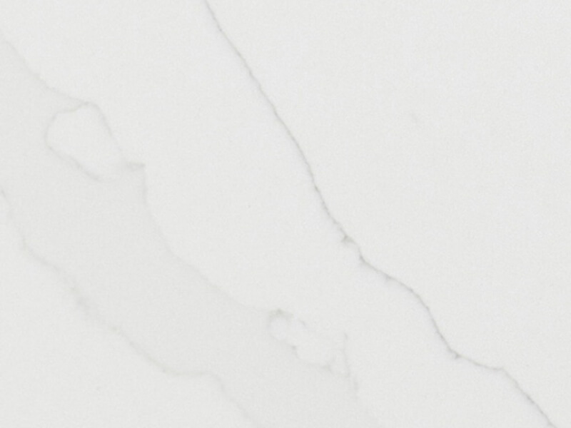 Calacatta Oro is an engineered quartz surface, typically composed of 90–94% crushed natural quartz crystal, bound with polymer resin and mineral pigments. With a Mohs hardness rating of 7, quartz is exceptionally hard and durable for kitchen use. The precise ratio of quartz aggregate, resin and pigment controls both the visual appearance and the surface performance. All engineered quartz slabs are manufactured to strict tolerances and tested for durability and finish quality.
