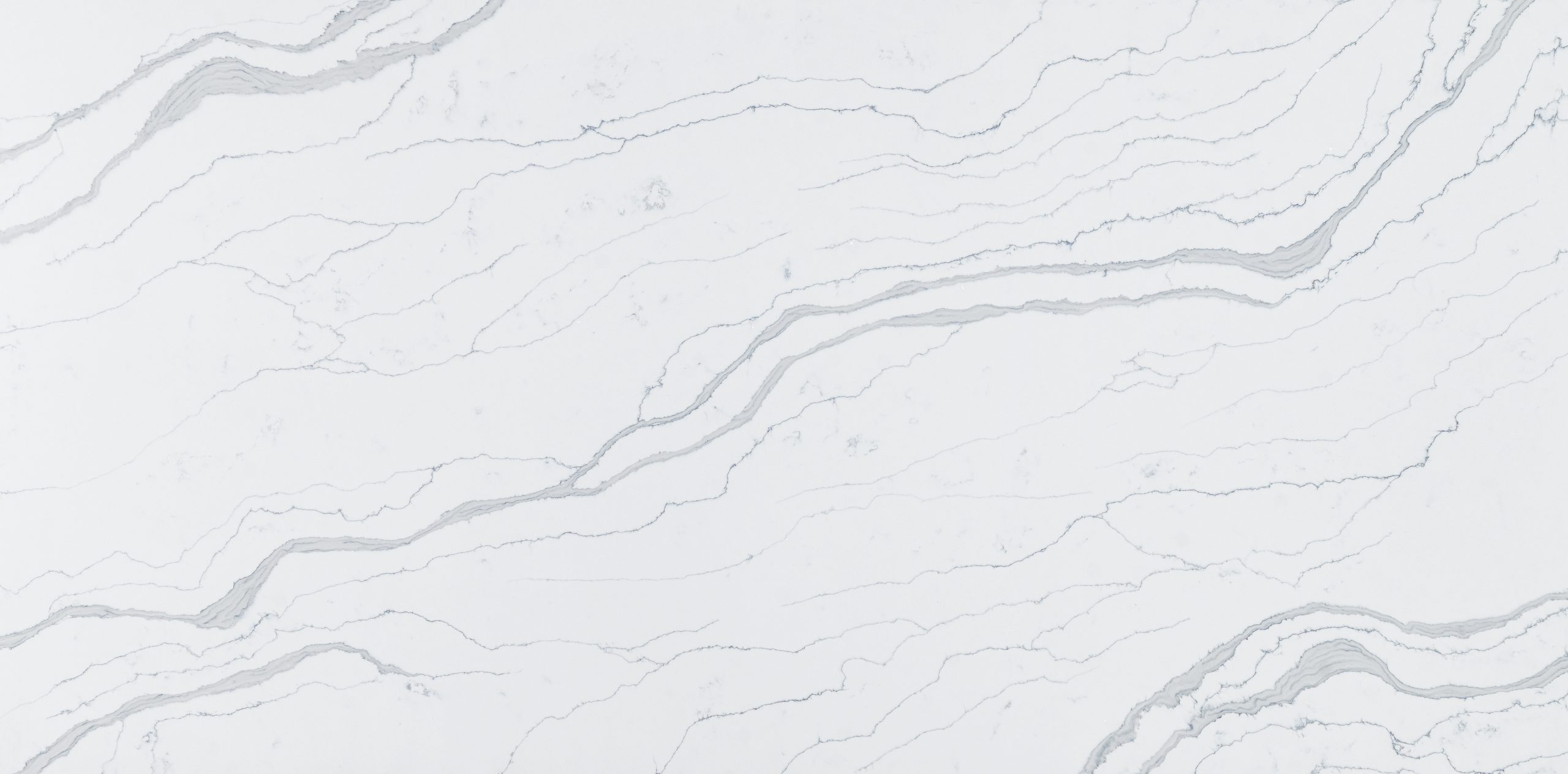 Calacatta Sterno is an engineered quartz surface, typically composed of 90–94% crushed natural quartz crystal, bound with polymer resin and mineral pigments. With a Mohs hardness rating of 7, quartz is exceptionally hard and durable for kitchen use. The precise ratio of quartz aggregate, resin and pigment controls both the visual appearance and the surface performance. All engineered quartz slabs are manufactured to strict tolerances and tested for durability and finish quality.