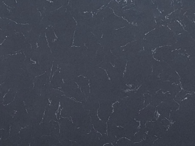 Carrara Black is an engineered quartz surface, typically composed of 90–94% crushed natural quartz crystal, bound with polymer resin and mineral pigments. With a Mohs hardness rating of 7, quartz is exceptionally hard and durable for kitchen use. The precise ratio of quartz aggregate, resin and pigment controls both the visual appearance and the surface performance. All engineered quartz slabs are manufactured to strict tolerances and tested for durability and finish quality.