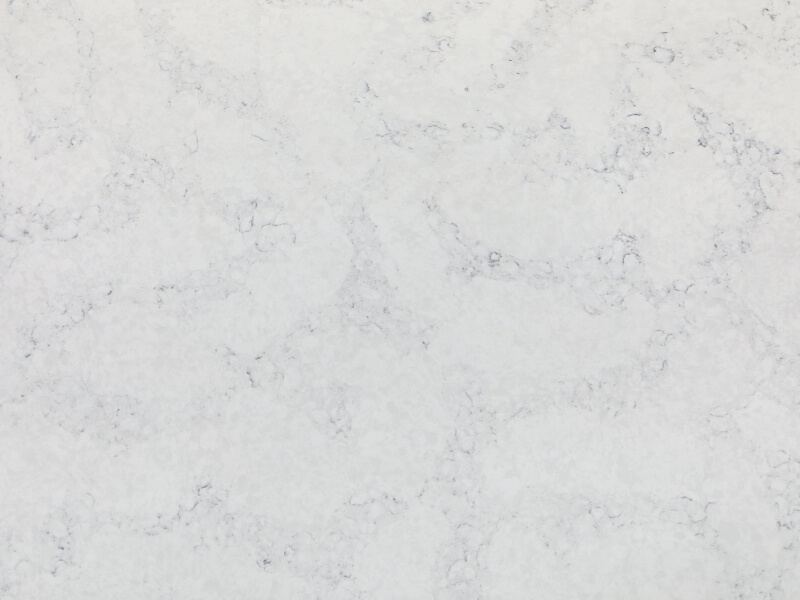 Carrara Dove is an engineered quartz surface, typically composed of 90–94% crushed natural quartz crystal, bound with polymer resin and mineral pigments. With a Mohs hardness rating of 7, quartz is exceptionally hard and durable for kitchen use. The precise ratio of quartz aggregate, resin and pigment controls both the visual appearance and the surface performance. All engineered quartz slabs are manufactured to strict tolerances and tested for durability and finish quality.