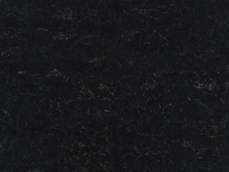 Carrara Noir is an engineered quartz surface, typically composed of 90–94% crushed natural quartz crystal, bound with polymer resin and mineral pigments. With a Mohs hardness rating of 7, quartz is exceptionally hard and durable for kitchen use. The precise ratio of quartz aggregate, resin and pigment controls both the visual appearance and the surface performance. All engineered quartz slabs are manufactured to strict tolerances and tested for durability and finish quality.