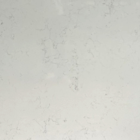 Carrara White is an engineered quartz surface, typically composed of 90–94% crushed natural quartz crystal, bound with polymer resin and mineral pigments. With a Mohs hardness rating of 7, quartz is exceptionally hard and durable for kitchen use. The precise ratio of quartz aggregate, resin and pigment controls both the visual appearance and the surface performance. All engineered quartz slabs are manufactured to strict tolerances and tested for durability and finish quality.