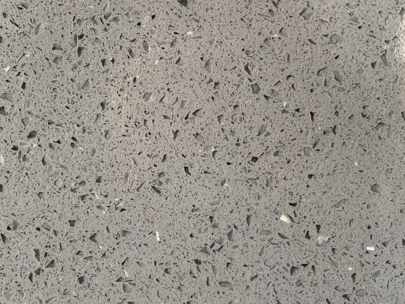 Grigio Sparkle Dark is an engineered quartz surface, typically composed of 90–94% crushed natural quartz crystal, bound with polymer resin and mineral pigments. With a Mohs hardness rating of 7, quartz is exceptionally hard and durable for kitchen use. The precise ratio of quartz aggregate, resin and pigment controls both the visual appearance and the surface performance. All engineered quartz slabs are manufactured to strict tolerances and tested for durability and finish quality.