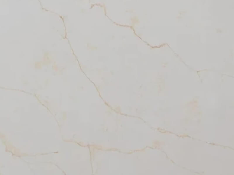 Ivory Serene is an engineered quartz surface, typically composed of 90–94% crushed natural quartz crystal, bound with polymer resin and mineral pigments. With a Mohs hardness rating of 7, quartz is exceptionally hard and durable for kitchen use. The precise ratio of quartz aggregate, resin and pigment controls both the visual appearance and the surface performance. All engineered quartz slabs are manufactured to strict tolerances and tested for durability and finish quality.