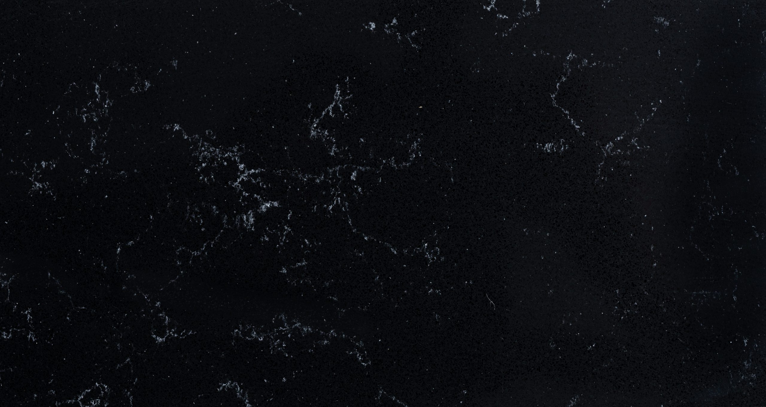 Marquina is an engineered quartz surface, typically composed of 90–94% crushed natural quartz crystal, bound with polymer resin and mineral pigments. With a Mohs hardness rating of 7, quartz is exceptionally hard and durable for kitchen use. The precise ratio of quartz aggregate, resin and pigment controls both the visual appearance and the surface performance. All engineered quartz slabs are manufactured to strict tolerances and tested for durability and finish quality.