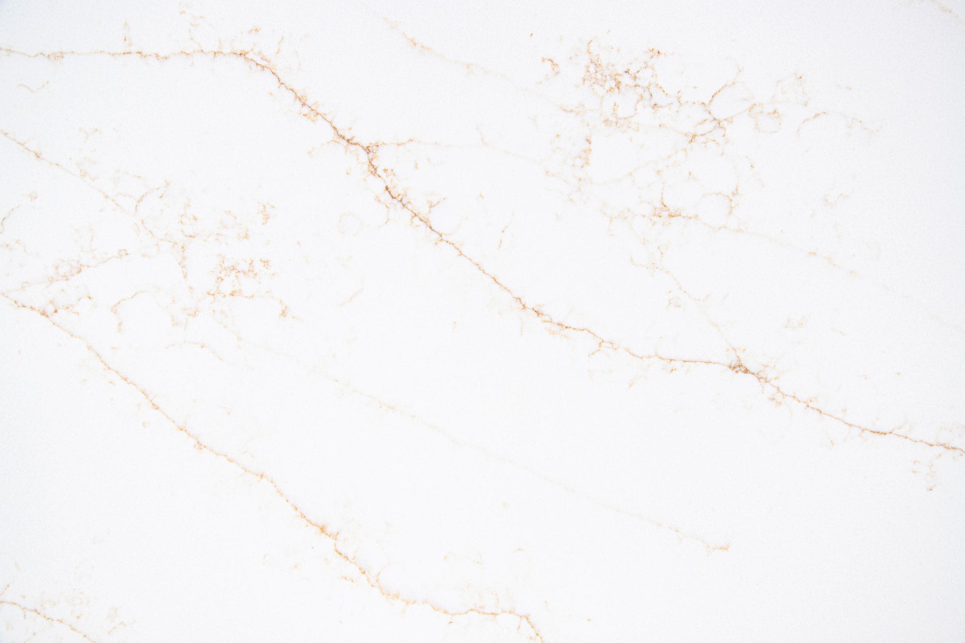 Moderna Gold CQS is an engineered quartz surface, typically composed of 90–94% crushed natural quartz crystal, bound with polymer resin and mineral pigments. With a Mohs hardness rating of 7, quartz is exceptionally hard and durable for kitchen use. The precise ratio of quartz aggregate, resin and pigment controls both the visual appearance and the surface performance. All engineered quartz slabs are manufactured to strict tolerances and tested for durability and finish quality.