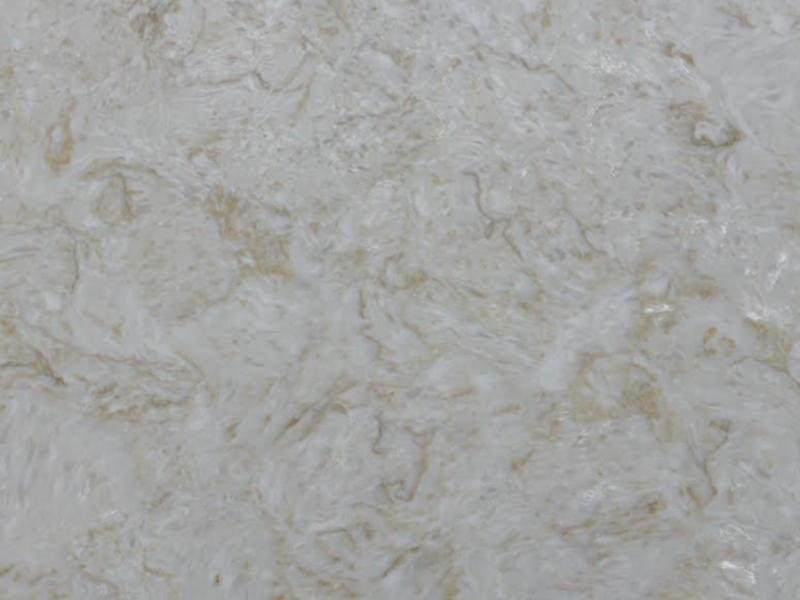 Perla Gold is an engineered quartz surface, typically composed of 90–94% crushed natural quartz crystal, bound with polymer resin and mineral pigments. With a Mohs hardness rating of 7, quartz is exceptionally hard and durable for kitchen use. The precise ratio of quartz aggregate, resin and pigment controls both the visual appearance and the surface performance. All engineered quartz slabs are manufactured to strict tolerances and tested for durability and finish quality.