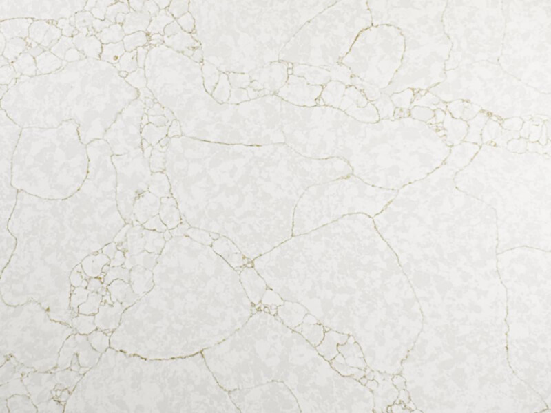Statuario Gold is an engineered quartz surface, typically composed of 90–94% crushed natural quartz crystal, bound with polymer resin and mineral pigments. With a Mohs hardness rating of 7, quartz is exceptionally hard and durable for kitchen use. The precise ratio of quartz aggregate, resin and pigment controls both the visual appearance and the surface performance. All engineered quartz slabs are manufactured to strict tolerances and tested for durability and finish quality.